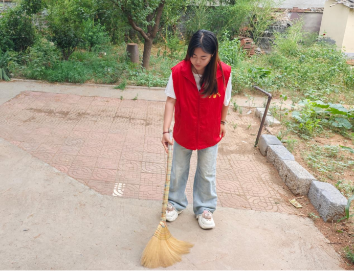 实践感悟:徐颖颖说:“当踩着盛夏的蝉鸣回到家乡时,我从未想过,短短几天的社会实践会成为暑假最鲜活的成长历程”。清扫老旧的杂物时,我们打扫的每寸土地,擦拭的每一件东西,不仅是旧物,更是曾经的故事,扫帚扫过的不只是落叶,更是藏在时光里的念想。每次挥动扫帚,我都会特意留意墙角的青苔、窗台上的盆栽,仿佛在触摸家乡的脉搏。帮村委会写宣传稿的经历则更像一场双向奔赴。当居民指着公告栏说“这文章写得实在”时,我终于懂了,最动人的文字从来藏在烟火里。如今我还清楚的记得,当家乡以更整洁的模样舒展,当文字真正连接起人心,这种被需要的感觉,比任何奖状都珍贵。