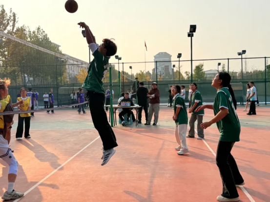 排球场上,选手们鱼跃救球时身姿舒展,腾空扣杀如惊雷裂空。连续几个回合攻防拉锯后,队长一记斜线暴扣直落死角,队友相拥呐喊,汗水在阳光下折射出金色光芒。