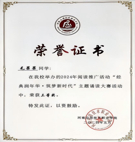 身兼数职的她,始终以“服务同学、助力校园发展”为己任。作为班级团支书,她主动关心同学需求,组织各类班级活动,凝聚班级力量,助力班级形成积极向上的班风;作为学院新媒体中心主任,她组织策划校园文化宣传内容,优化平台运营,用生动的图文、视频讲好milan米兰官网的故事,提升学院影响力。因工作表现突出,她先后获评省级三好学生、优秀共青团员、优秀学生干部,用责任与担当赢得了师生的一致认可。