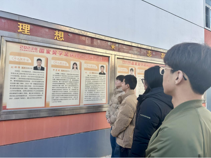 同学们通过宣传展板深入了解和学习国家奖学金获得者的先进事迹,深刻感悟到国奖获得者在学习生活、比赛竞赛、社会实践、志愿服务中的心路历程和顽强拼搏,矢志追梦的先进事迹,为全校学生树立了标杆和榜样。同学们从他们身上感受到了“积极向上”的正能量,这是一堂鲜活生动的思政大课。