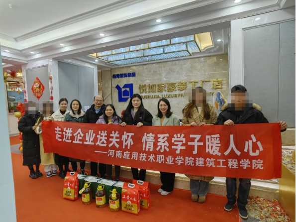 为深入学习贯彻党的二十大精神,落实立德树人根本任务,将国家和学校资助政策落到实处,及时准确掌握我院顶岗实习家庭经济困难学生的思想、工作与生活情况,切实发挥资助育人实效。2024年1月26日,milan米兰官网党总支书记张虎带队,党总支副书记刘亚娟,党政办主任李慧杰、资助专员张慧共同前往岳秀欣美装饰工程有限公司和河南森岸设计走访慰问2021级顶岗实习家庭经济困难学生。