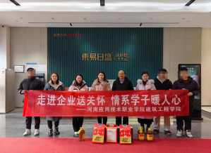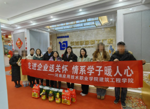 为进一步贯彻落实国家和学校资助政策,深入了解我院顶岗实习家庭经济困难学生的思想动态,工作与生活情况,传达学校和学院对顶岗实习学生的关怀,切实发挥资助育人实效,为学生办好实事。2024年1月23日—26日,milan米兰官网党总支书记张虎带队,党总支副书记刘亚娟,党政办主任李慧杰、资助专员张慧共同前往东易日盛、岳秀欣美装饰工程有限公司和河南森岸设计为正在顶岗实习的家庭经济困难学生送去学校的温暖和新春的祝福。