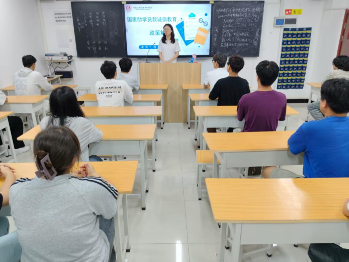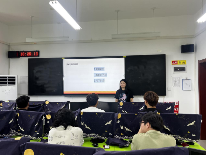 专题培训结束后,各辅导员迅速行动,以班级为单位开展主题班会。通过政策宣讲、案例分享、现场答疑等环节,确保每一位学生都能清晰了解资助政策。辅导员们向学生系统介绍了国家奖学金、国家励志奖学金、国家助学金、高校和生源地助学贷款等政策,重点讲解申请流程和注意事项,帮助学生掌握申请要点。在答疑环节,辅导员们针对学生提出的问题,如助学贷款还款方式、助学金评选标准等进行耐心细致的解答,消除学生的疑惑。