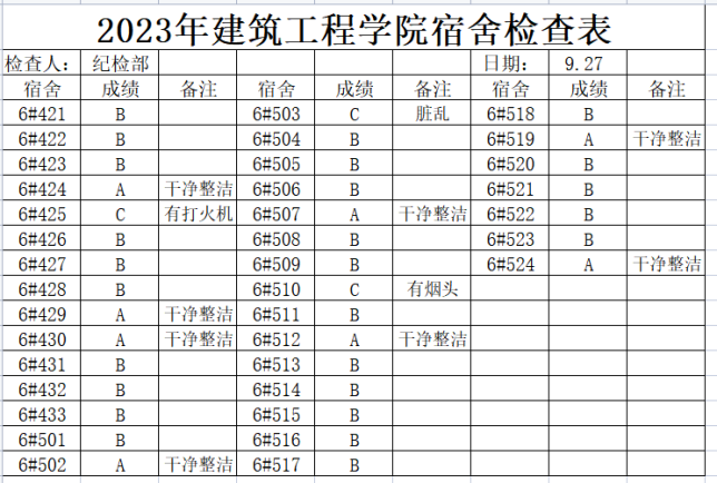 此次检查过程中,大多数学生宿舍安全、卫生状况良好,但仍有个别宿舍存在一定的问题,例如宿舍内有异味、内务整理不规范、桌面杂乱、乱扯乱挂以及使用违禁物品等,对此,纪检部成员针对以上情况对相应宿舍提出整改意见,得到了有效的改善。