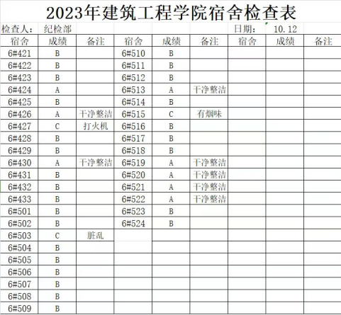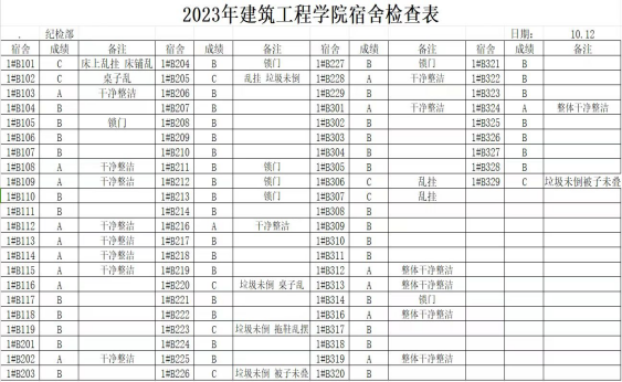 检查结果反映,大多宿舍地面无杂物,房间干净整洁,物品摆放有序。但仍有一部分宿舍存在宿舍违纪,卫生较差等情况。针对存在问题的宿舍,已及时提出整改建议,并叮嘱同学们要勤打扫勤整理,保持好宿舍卫生,共同营造一个干净、舒适的宿舍环境。