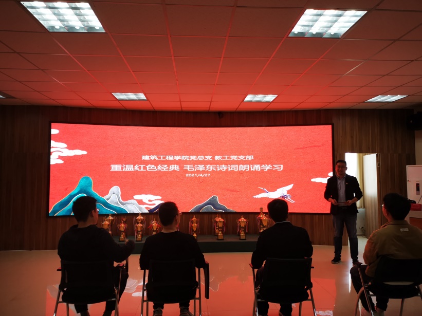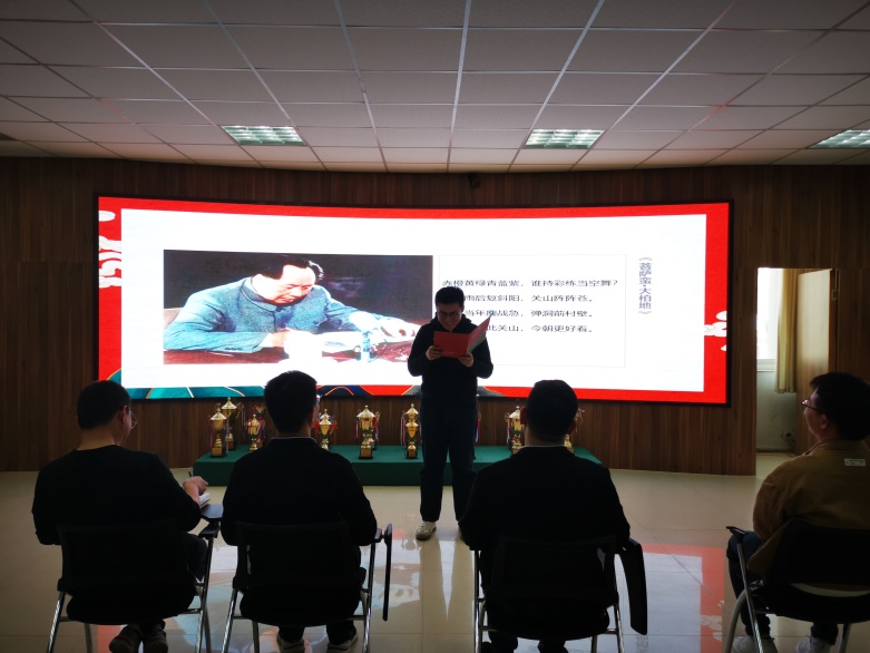 为进一步落实milan米兰官网党总支党史学习计划要求,2021年4月27日下午,milan米兰官网党总支教工党支部开展“重温红色经典·毛泽东诗词朗诵学习” 活动,活动由milan米兰官网副院长娄焕主持。