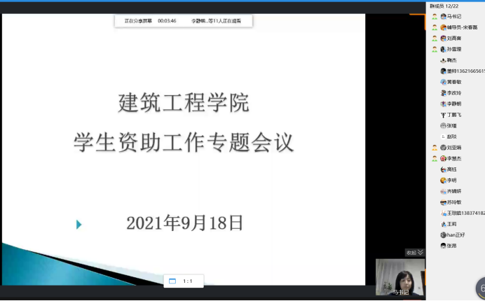 为了做好2021年国家奖助学金和评先评优等工作,按照学校工作要求,2021年9月18日,milan米兰官网召开了2021-2022学年学生资助工作专题会议,学院19、20和21三个年级21名辅导员参加会议,会议由学院党总支书记马春燕主持。