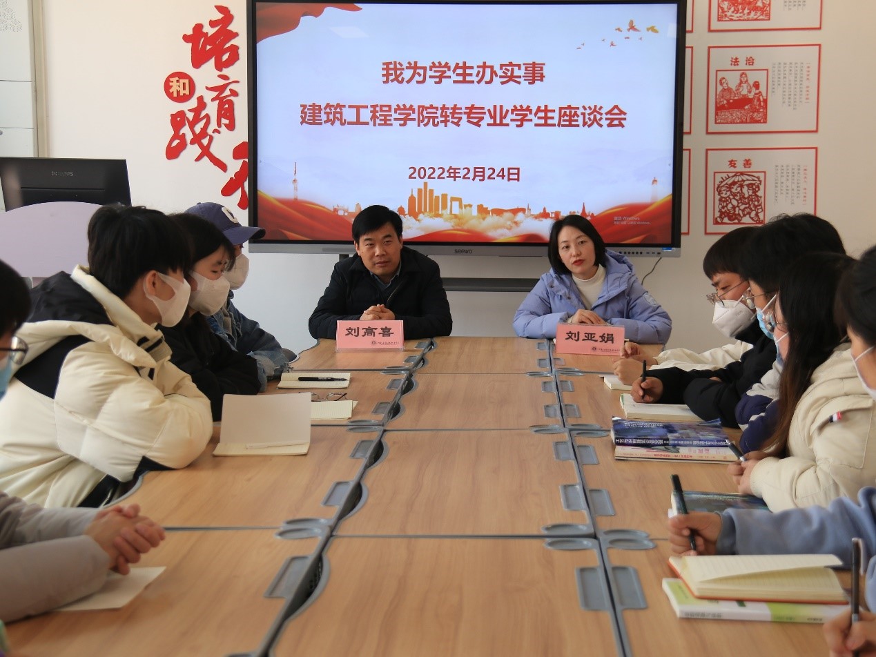 为了解2021级转专业同学进入学院后的学习生活情况,帮助学生解决实际困难,增强转专业学生对学院的认同感与归属感,提升学生凝聚力。2022年2月24日中午,milan米兰官网在办公楼516召开2021级转专业学生座谈会,学工办主任刘高喜,团总支书记刘亚娟,辅导员李慧杰及24名转专业学生参与会议。