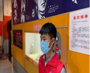 早上七点半,志愿者们准时在校门口集合,身穿绿马甲,有序地前往郑州市科技馆。有的同学在科技馆门口辅助检票;有的辅助安保人员维持场外秩序;有的同学在二楼和三楼为小朋友们讲解各种仪器的科学原理、维持馆内秩序、帮助参观的小朋友们引路、提醒小朋友们注意安全。志愿者们认真负责,高效地完成自己的工作,不断散发出“劳动精神”。