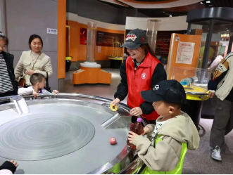郑州科技馆:小筑志愿者们帮工作人员检票,维持展厅秩序,为前来的观众介绍展品,指导仪器操作。志愿者与小朋友互动交流,为他们讲解科学原理和科学知识,让小朋友们近距离的感受科学的魅力,培养热爱科学,崇尚科学的兴趣。