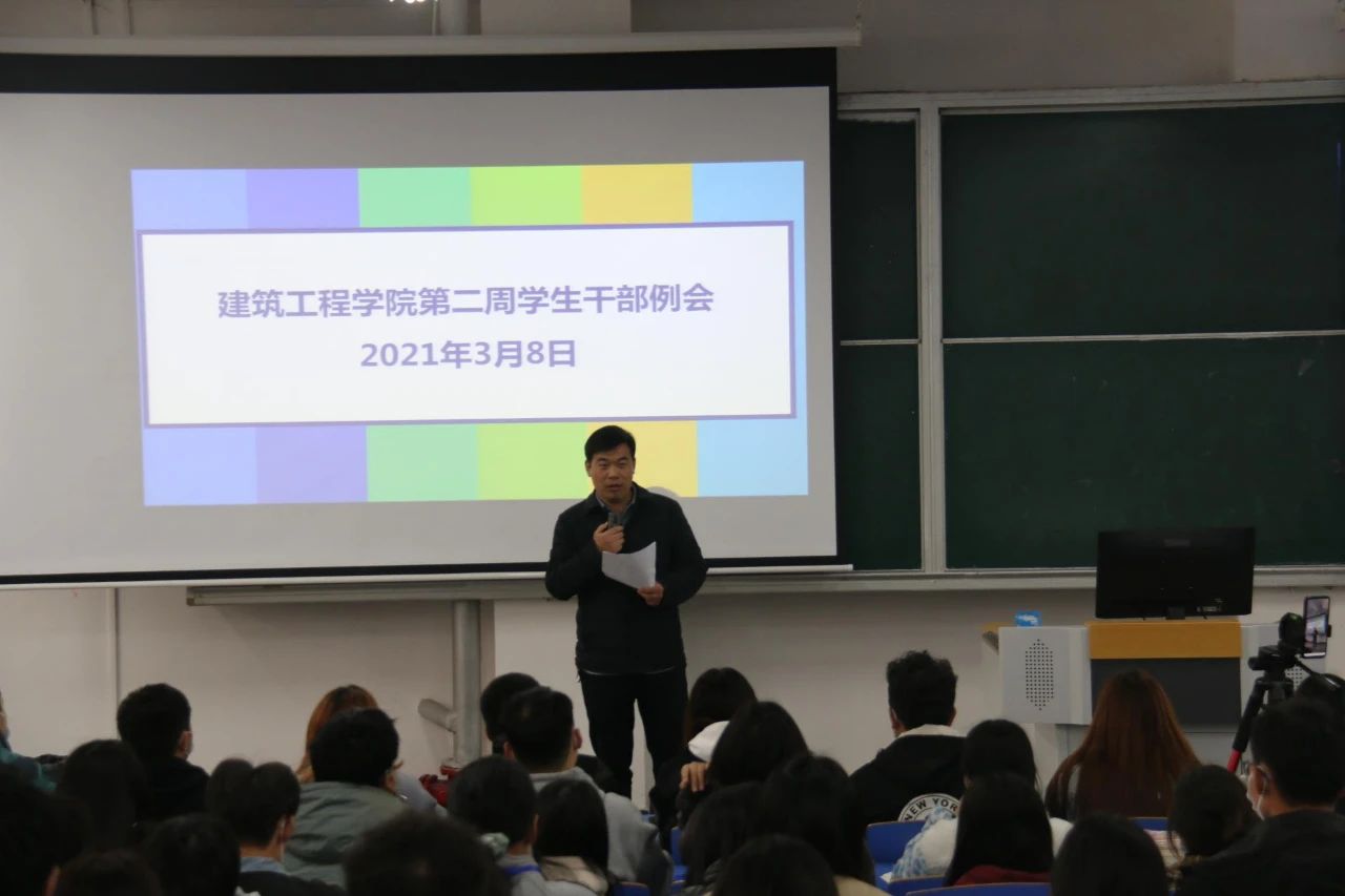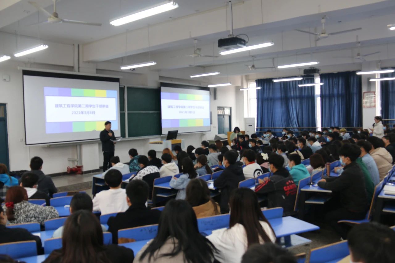 会议开始,刘高喜老师强调,作为学生干部必须带头遵守课堂纪律,增强学习和工作效率,在三月文明礼貌月活动中,大家一定要发挥好模范带头作用,带动身边同学的积极性。同时要注意宿舍安全及卫生问题,营造舒适的生活环境。