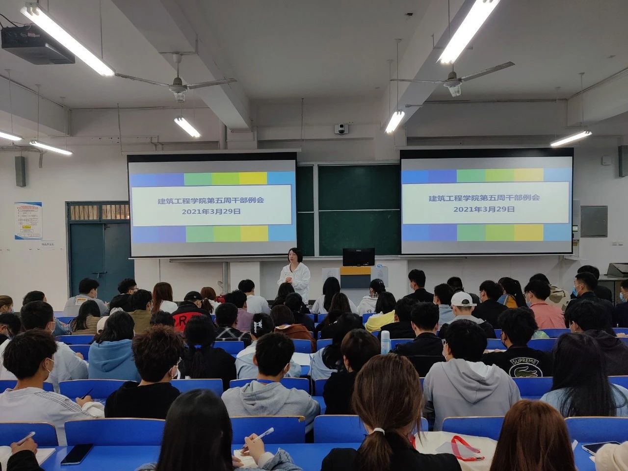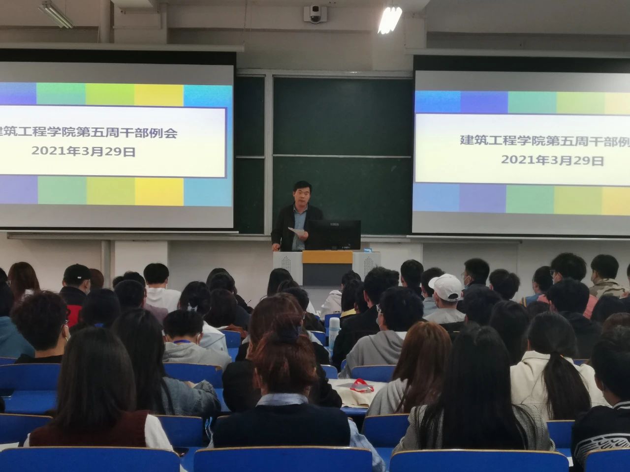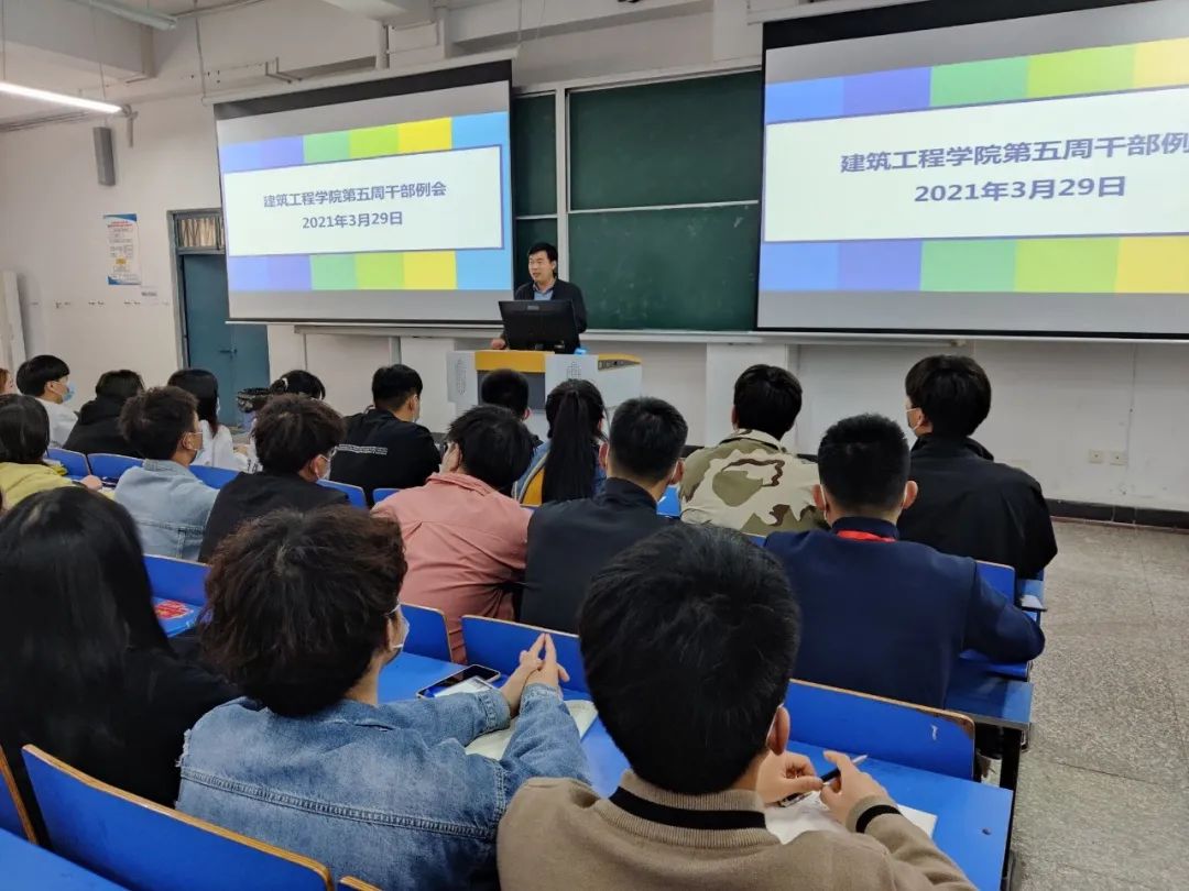 为提高小筑们的积极性,提升工作和学习的效率,milan米兰官网于2021年3月29日中午12: 00,在B楼102教室召开了milan米兰官网第五周学生干部例会,(东校区以视频会议方式参加),参与本次会议的有刘亚娟老师、刘高喜老师、李慧杰老师、宋春磊老师、孙雪理老师、团学会全体成员、各班班长及团支书。