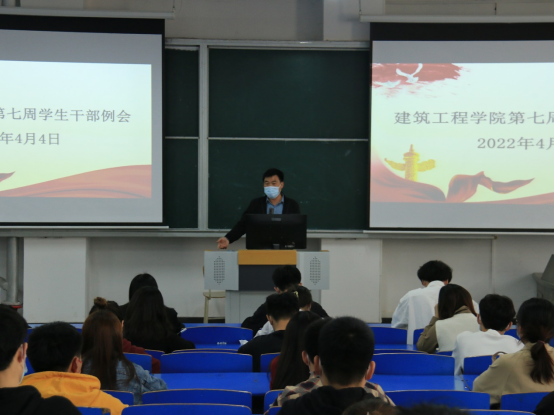 为增强学生干部的积极性,提升学习工作的效率,增强学生干部的带头模范作用,2022年4月4日中午,milan米兰官网组织学生干部代表在B102召开第七周学生干部例会,会议由学工办主任刘高喜主持,辅导员宋春磊、孙雪理参加会议。