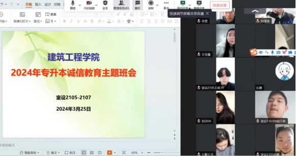 为树立学生诚信考试意识,确保2024年专升本考试安全有序、捍卫考试公平公正,进一步落实立德树人根本任务,3月18日至3月26日,milan米兰官网21级各班级以线上的方式开展了2024年专升本诚信考试教育主题班会,会议由各班辅导员主持,专升本考生全部参加。
