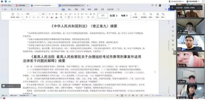 各位辅导员带领同学们认真学习考场规则、国家教育考试违规处理办法等资料,教育同学们要诚信应考,展示当代大学生的良好素养。接着带领同学们观看了《中华人民共和国刑法修正案(九)》《教育法》警示教育宣传片等内容,并结合各类违纪案例,讲解了考试作弊的严重性,希望同学们树立责任意识,端正考试态度,规范考试行为。根据要求,每位考生均签订了《河南省2024年普通高校专升本招生考试承诺书》。
